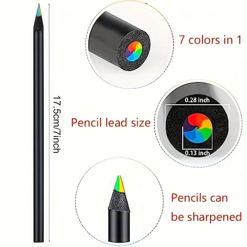 12-Pack Rainbow Water colour Wooden Pencils, Multi-Coloured, Non-Toxic, Featherless, School Supplies, Kawaii Stationery, Back to School Essentials