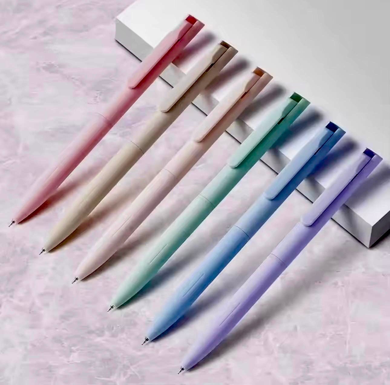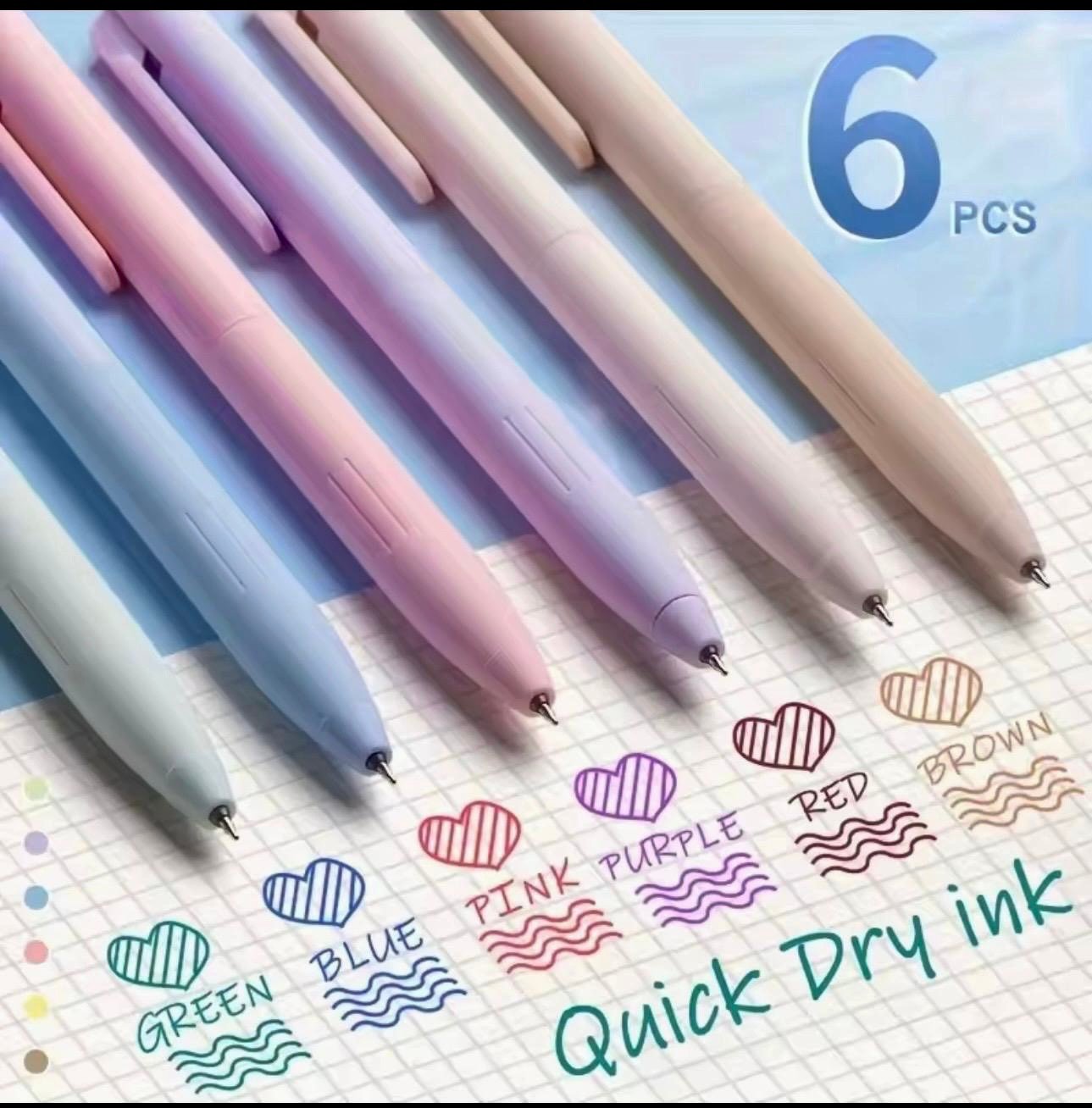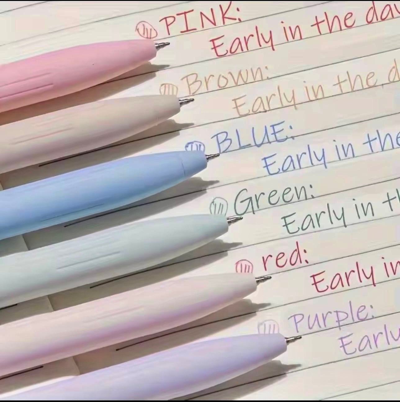 Set of 6 pastel gel pens with smooth, quick-dry ink and a fine 0.5mm tip. Retractable, cute design perfect for note taking, journaling, and school use.
