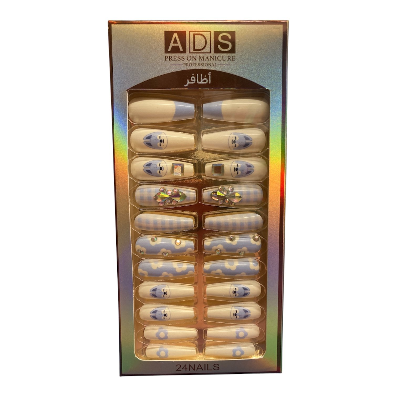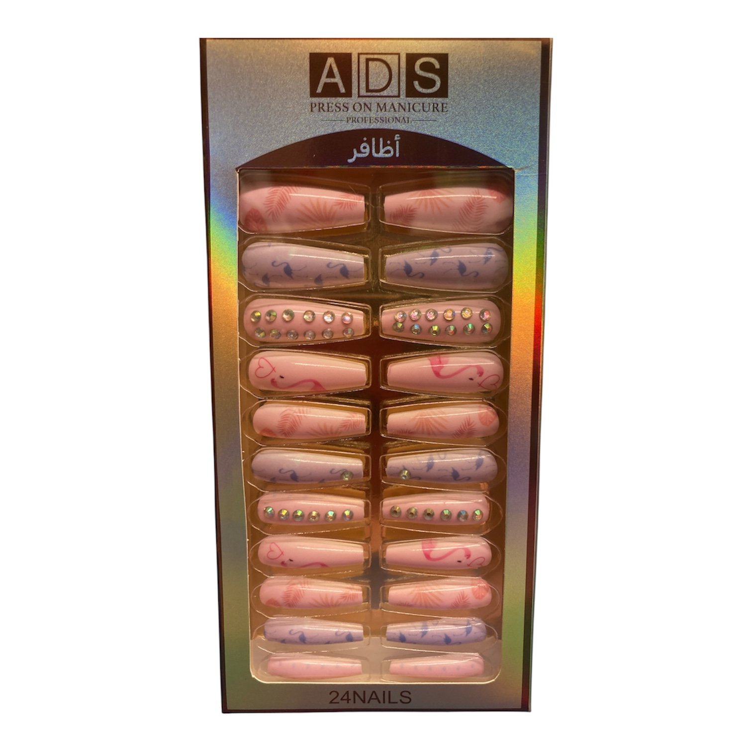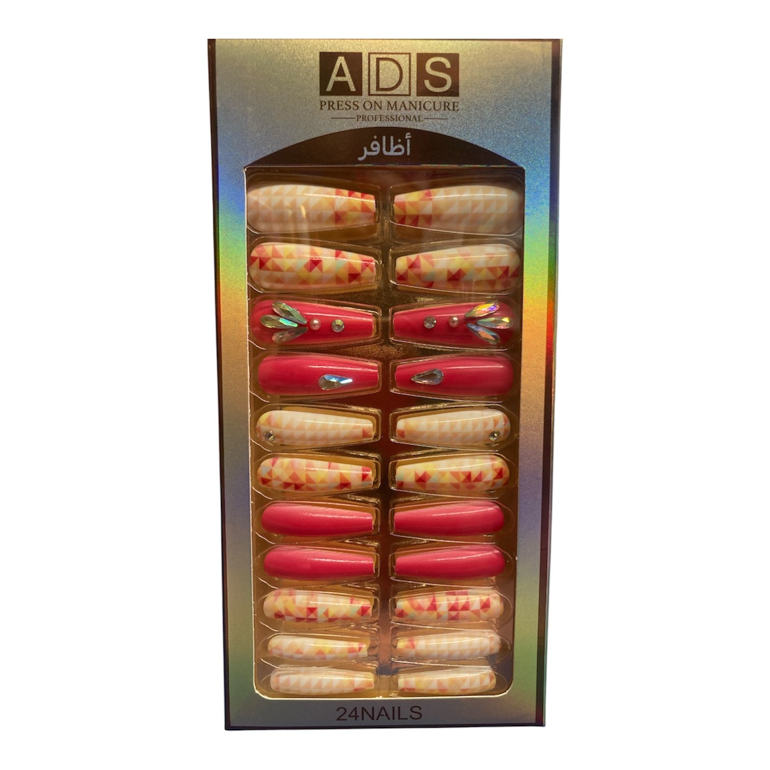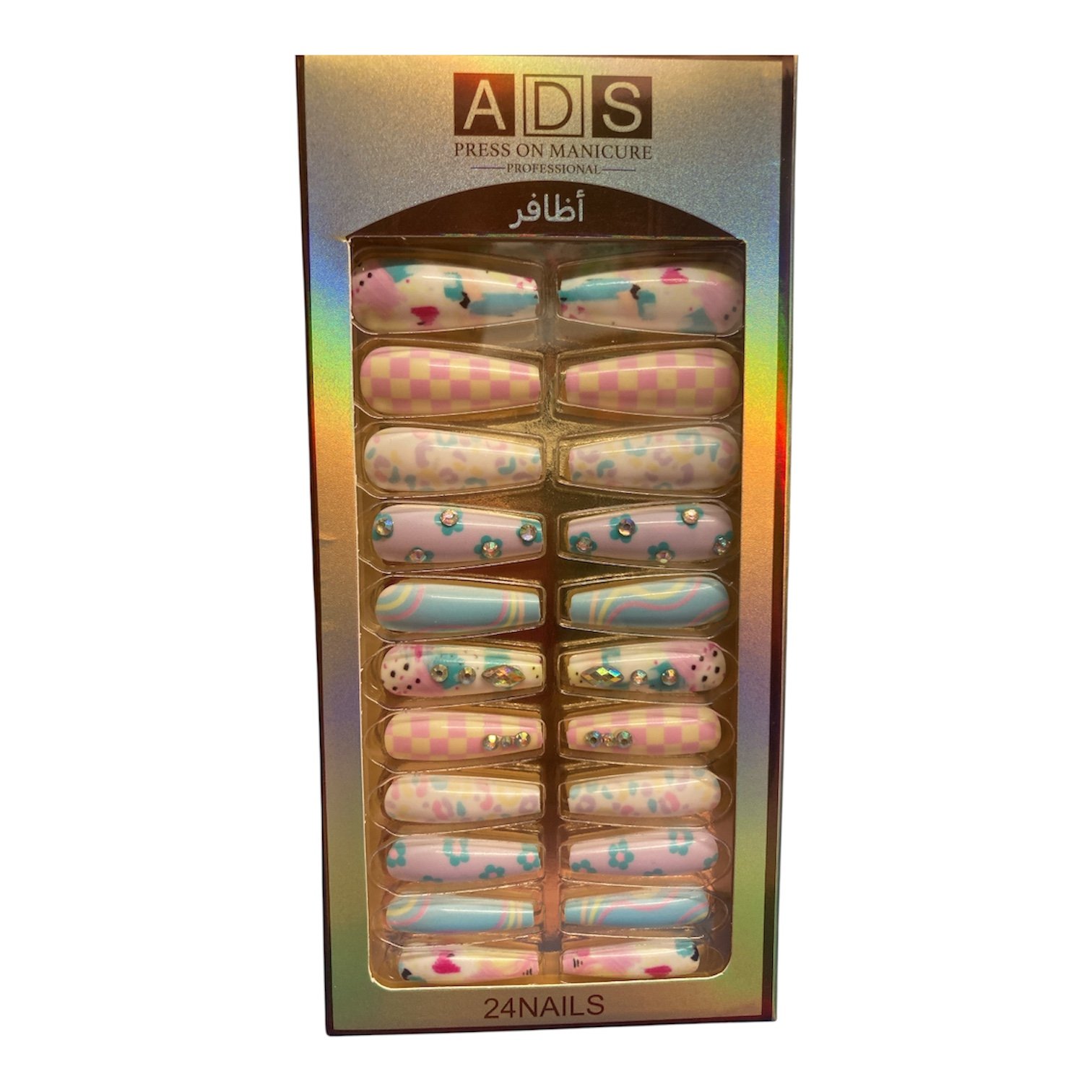 24Pcs Rectangle Shape ADS False Nails – Long Lasting Press On Nail Art Kit for Women