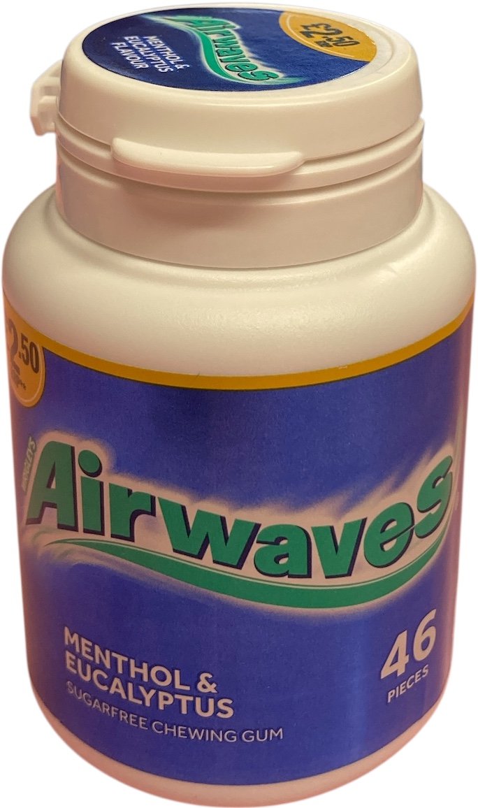Experience an instant burst of cooling freshness with Airwaves Menthol & Eucalyptus sugarfree gum. Packed in a convenient 46-piece tube, it delivers long-lasting breath freshness and a powerful menthol kick anytime, anywhere.