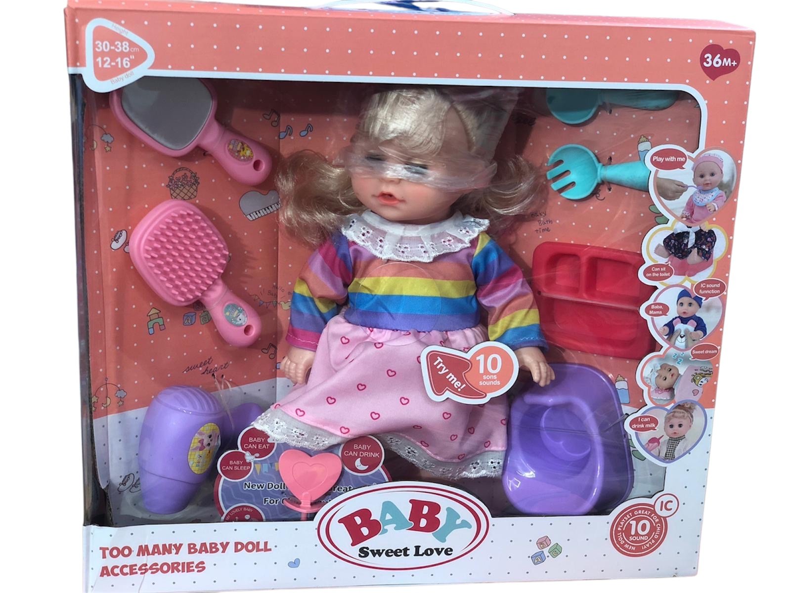 & Free ShippingThe Baby Sweet Love Doll Set comes with a beautiful baby doll and lots of fun accessories for endless caring play. Children can enjoy feeding, dressing, and nurturing their doll while creating sweet imaginative stories.