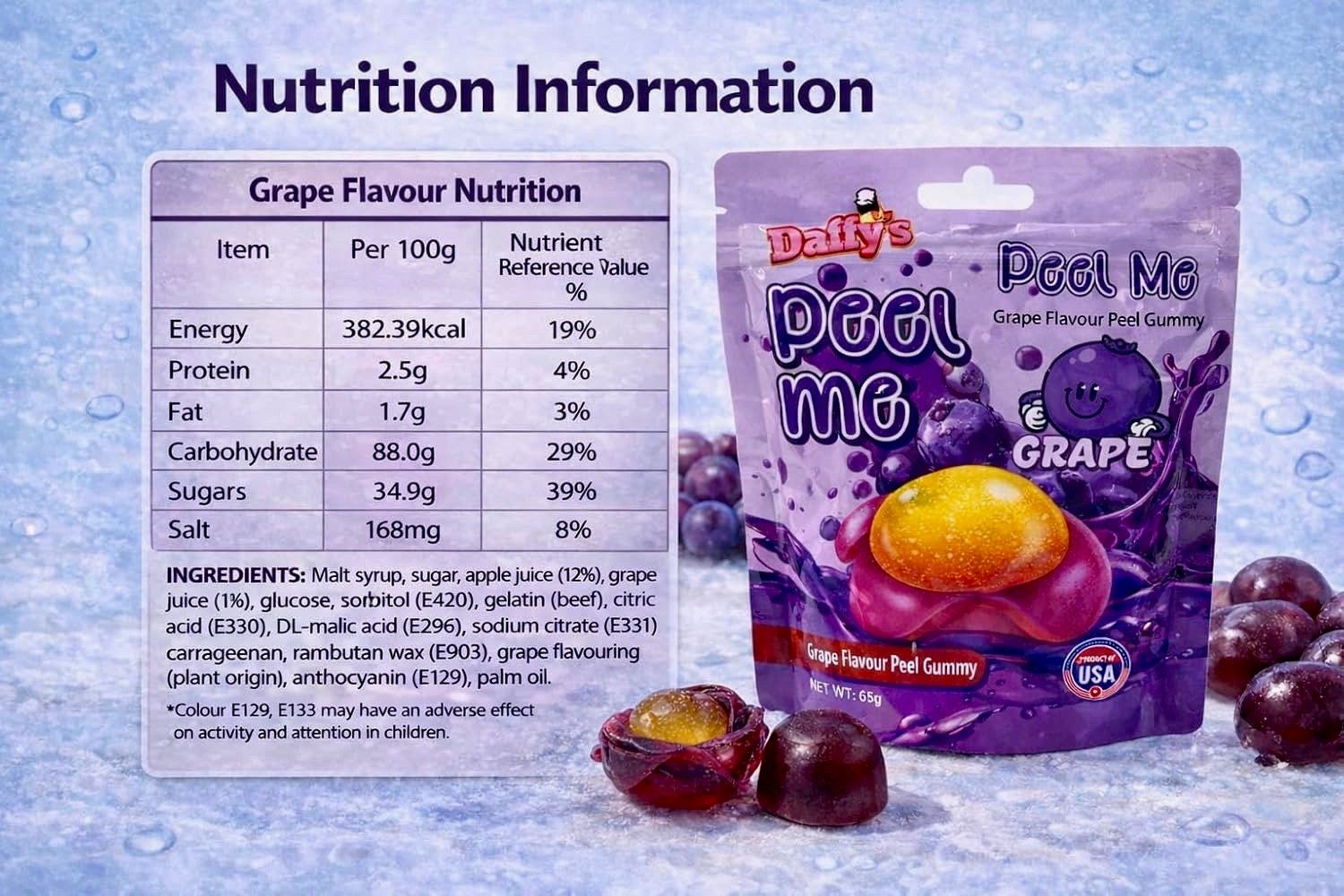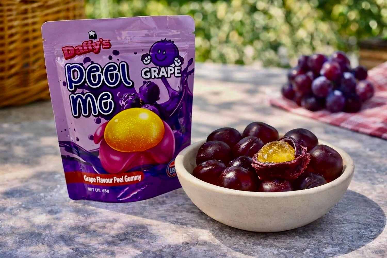 Daffy’s Peel Me Grape Flavour Gummy Candy peeling sweets real fruit juice, 65g (Grape) Halal