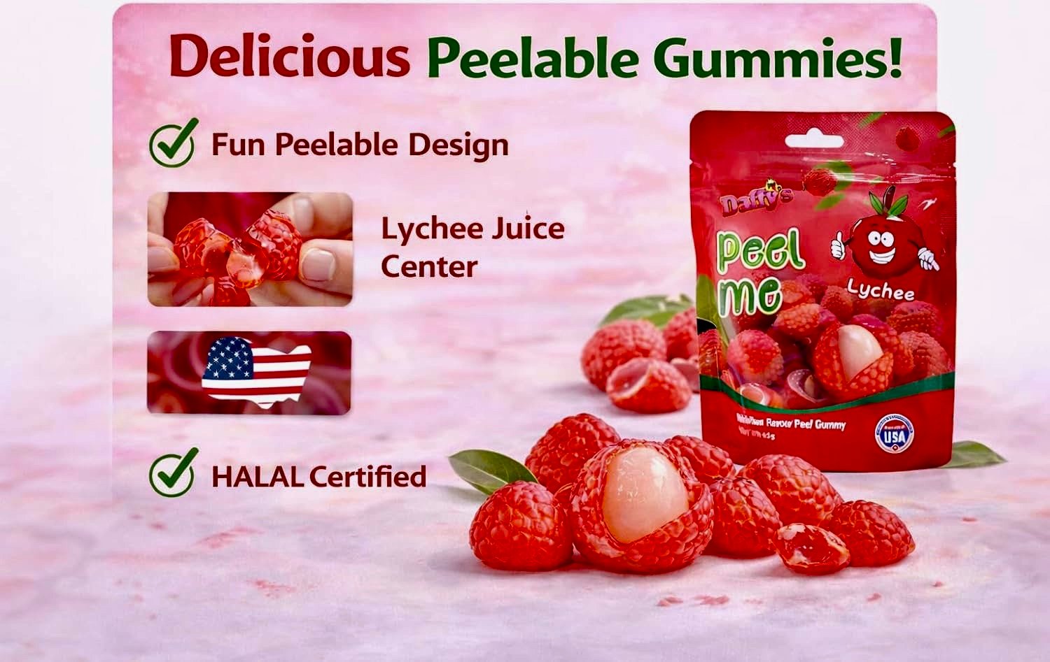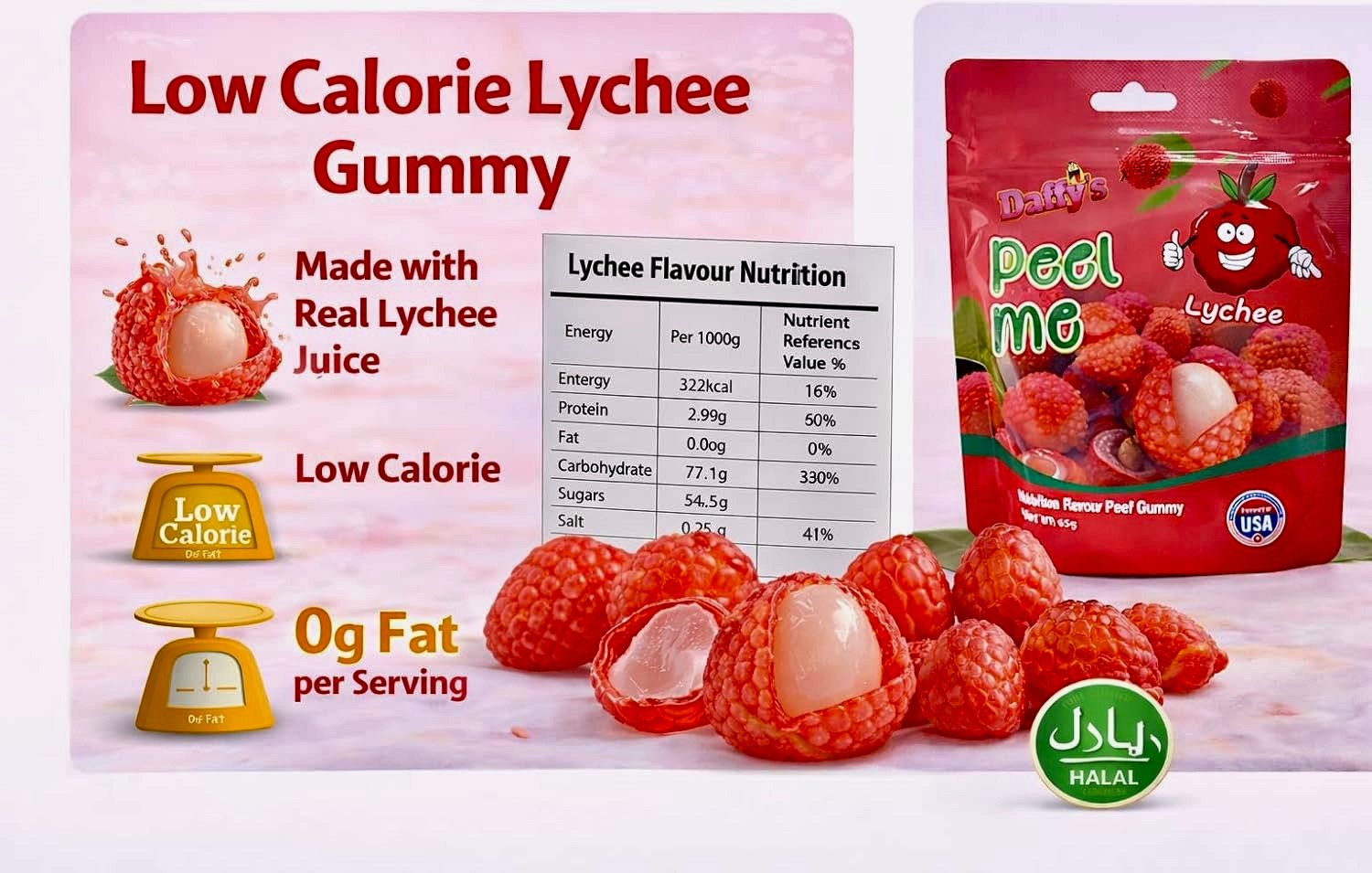 & Free ShippingDaffy’s Peel Me Lychee Flavour Gummy Candy (65g) offers a fun, peelable snacking experience with a sweet and refreshing lychee flavour. Made with real fruit juice and mango purée, these soft and chewy gummies are Halal-certifiedusing beef gelatin—perfect for snacking, sharing, parties, or gifting. 🍈🍬