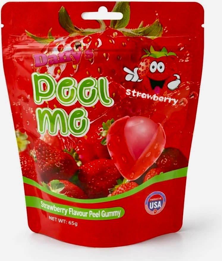 Daffy’s Peel Me Strawberry Flavour Gummy Candy (65g) delivers a fun, peelable snacking experience with a sweet American-style strawberry taste. Made with real fruit juice and mango purée, these soft and chewy gummies are perfect for sharing, parties, or everyday snacking in a convenient 65g pack. 🍓🍬