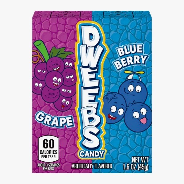 Dweebs Blueberry and Grape Dual Flavor American Candy 45g BoxDweebs Blueberry & Grape Candy 45g – American Chewy & Crunchy Fruity Snack