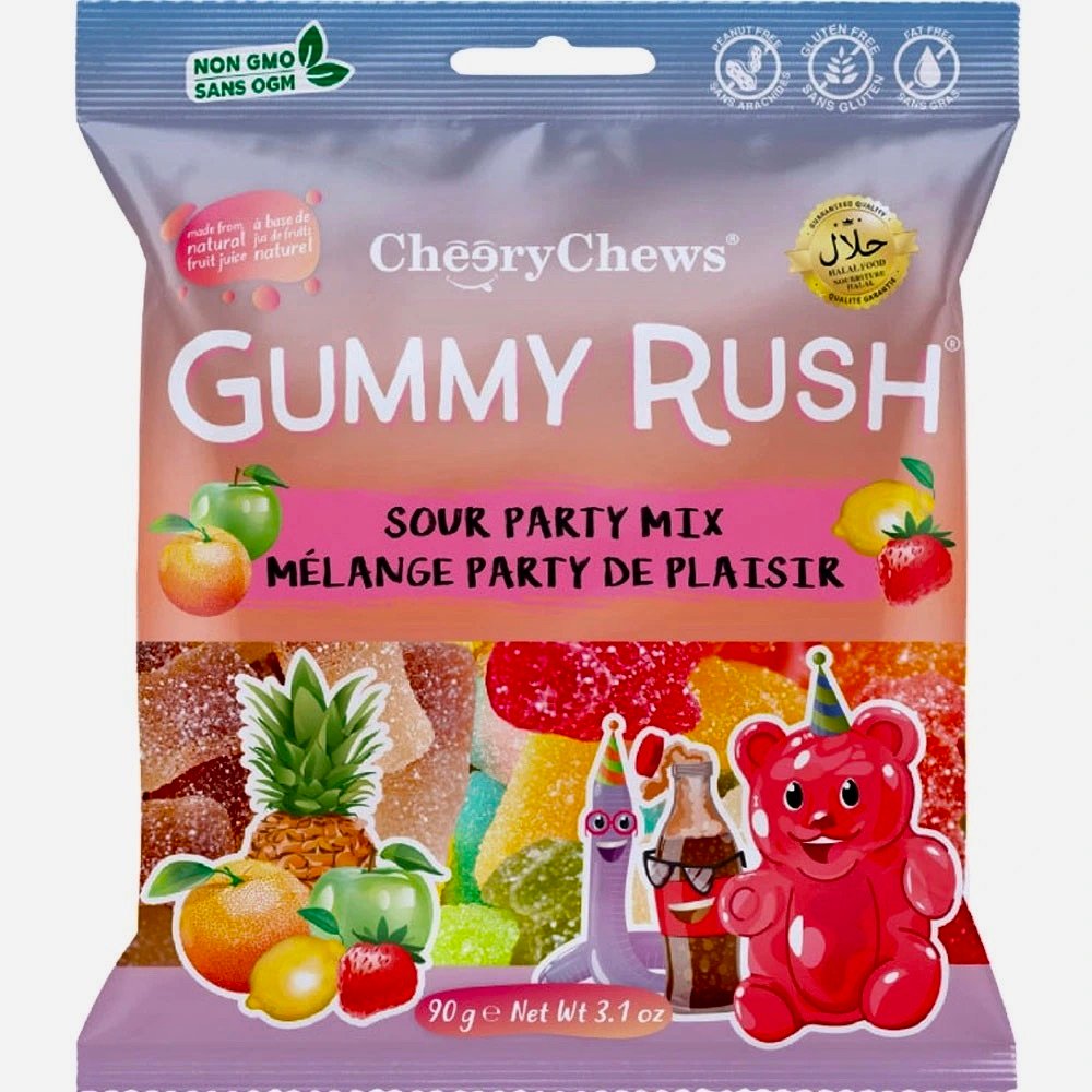 Gummy Rush Sour Party Mix Melange Party Plaster, Halal 90g is a fun mix of soft, chewy sour gummy sweets packed with tangy flavor. Made with halal-certified ingredients, it’s perfect for sharing, parties, or enjoying on the go. 🍬😝