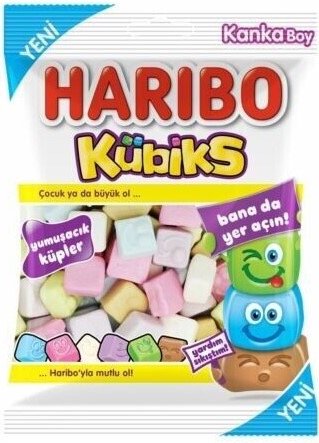 Enjoy soft, colorful cube-shaped gummy sweets with Haribo KubikS. Halal certified and packed in an 80 g bag—perfect for snacking, sharing, or lunchboxes.