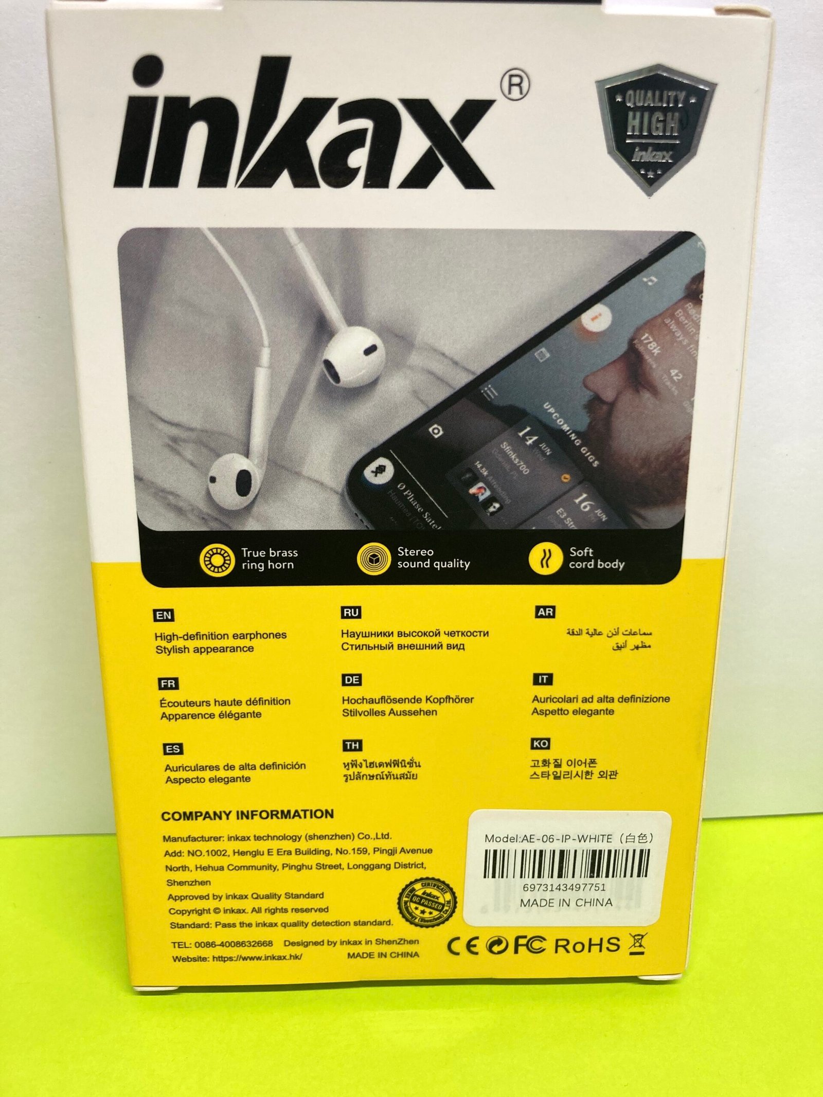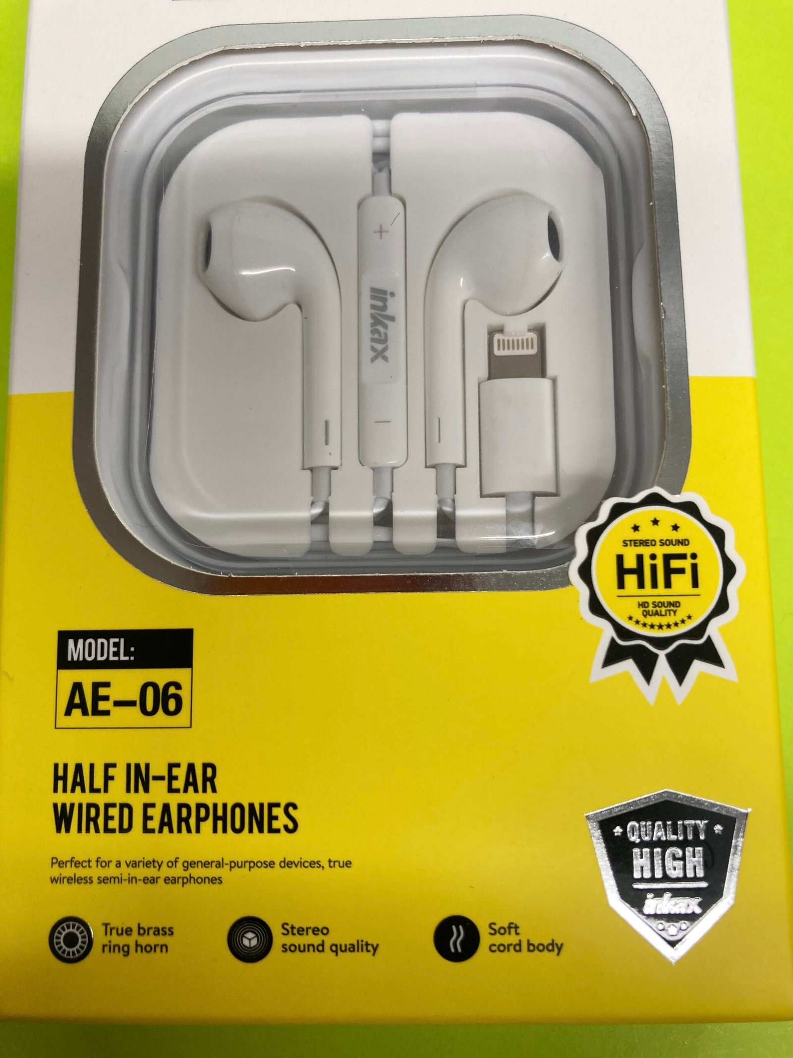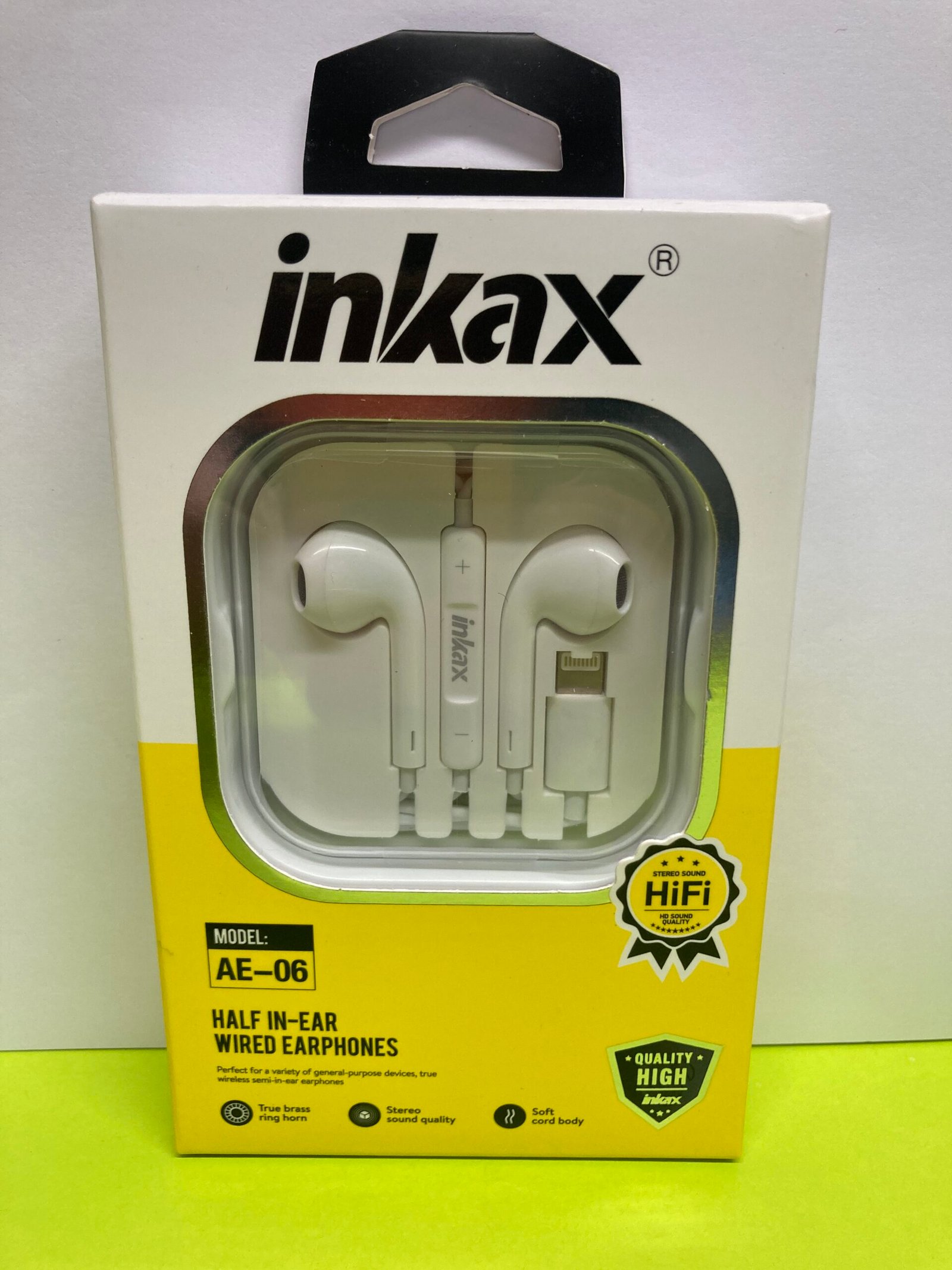 & Free ShippingInkax AE-06 half in-ear wired earphone designed for iPhone. Features stereo sound, high-quality audio performance, and comfortable fit for daily music and calls.