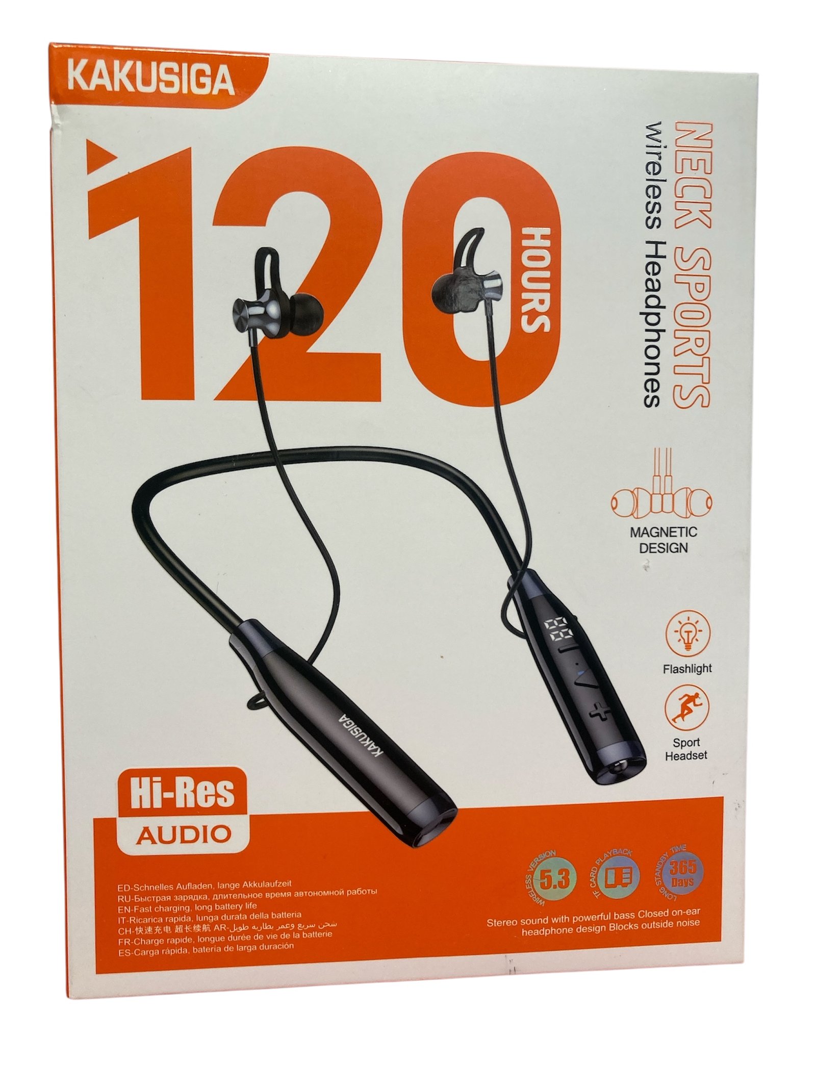 & Free ShippingKAKUSIGA Necsport wireless sports headphones with 120 hours battery life, Hi-Res audio, magnetic earbuds, and built-in flashlight. Comfortable and perfect for active use.