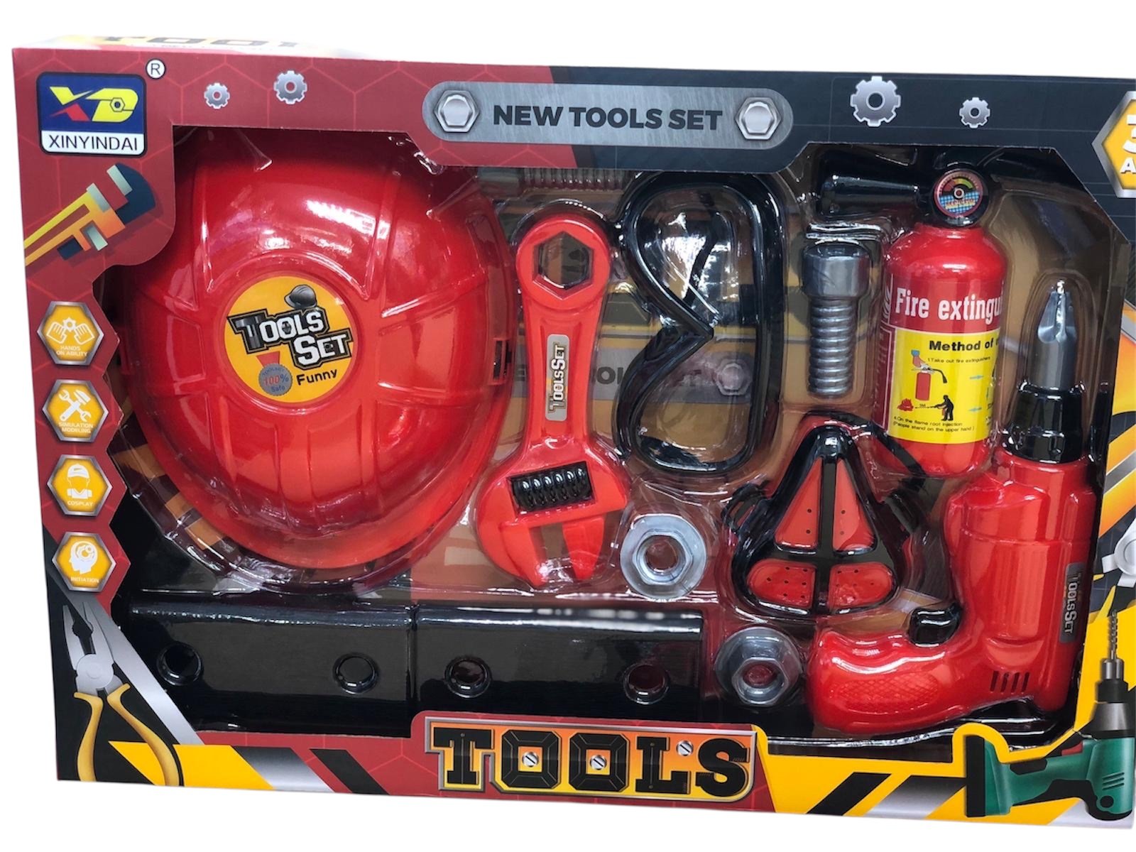 & Free ShippingAn exciting Kids Tools Set featuring a funny toy fire extinguisher, Xinyindai pieces, and other realistic play tools. Perfect for little builders who love hands-on, imaginative play.