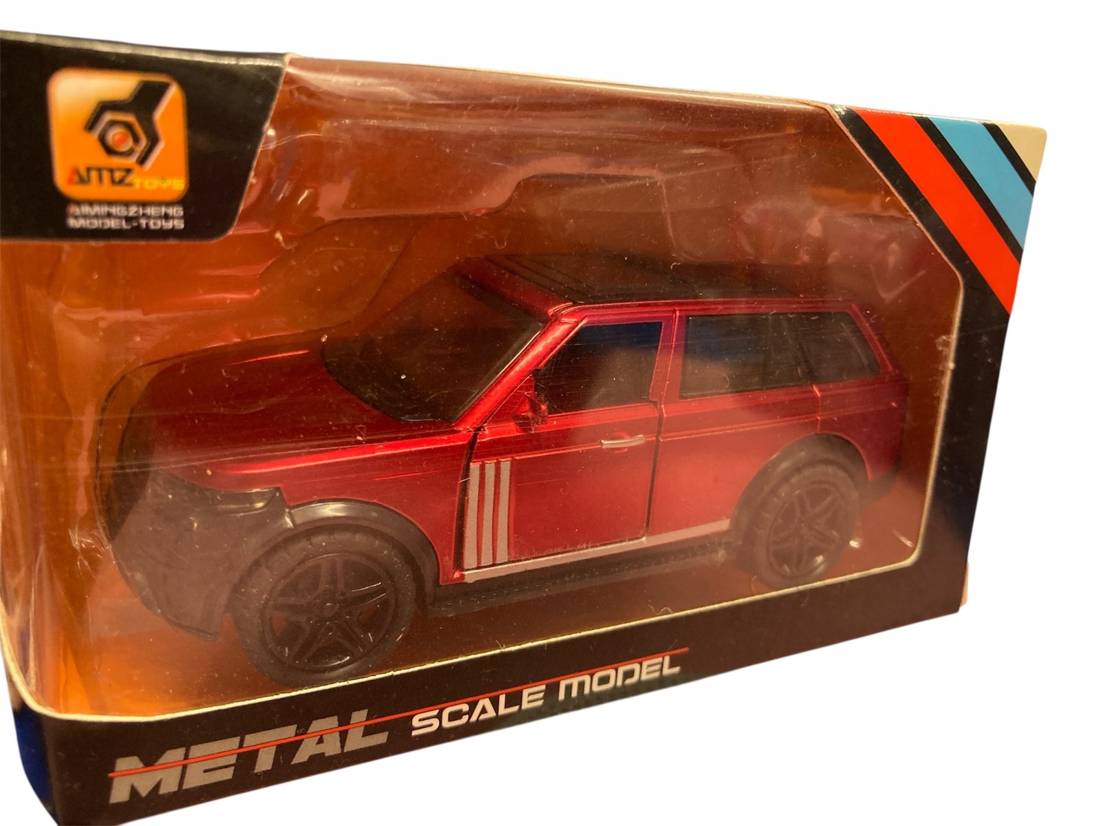 Alloy metal scale model car with openable doors and pull-back action. Models 4311A–43112A. Available in Red, White, Black & Blue. Durable and detailed design.