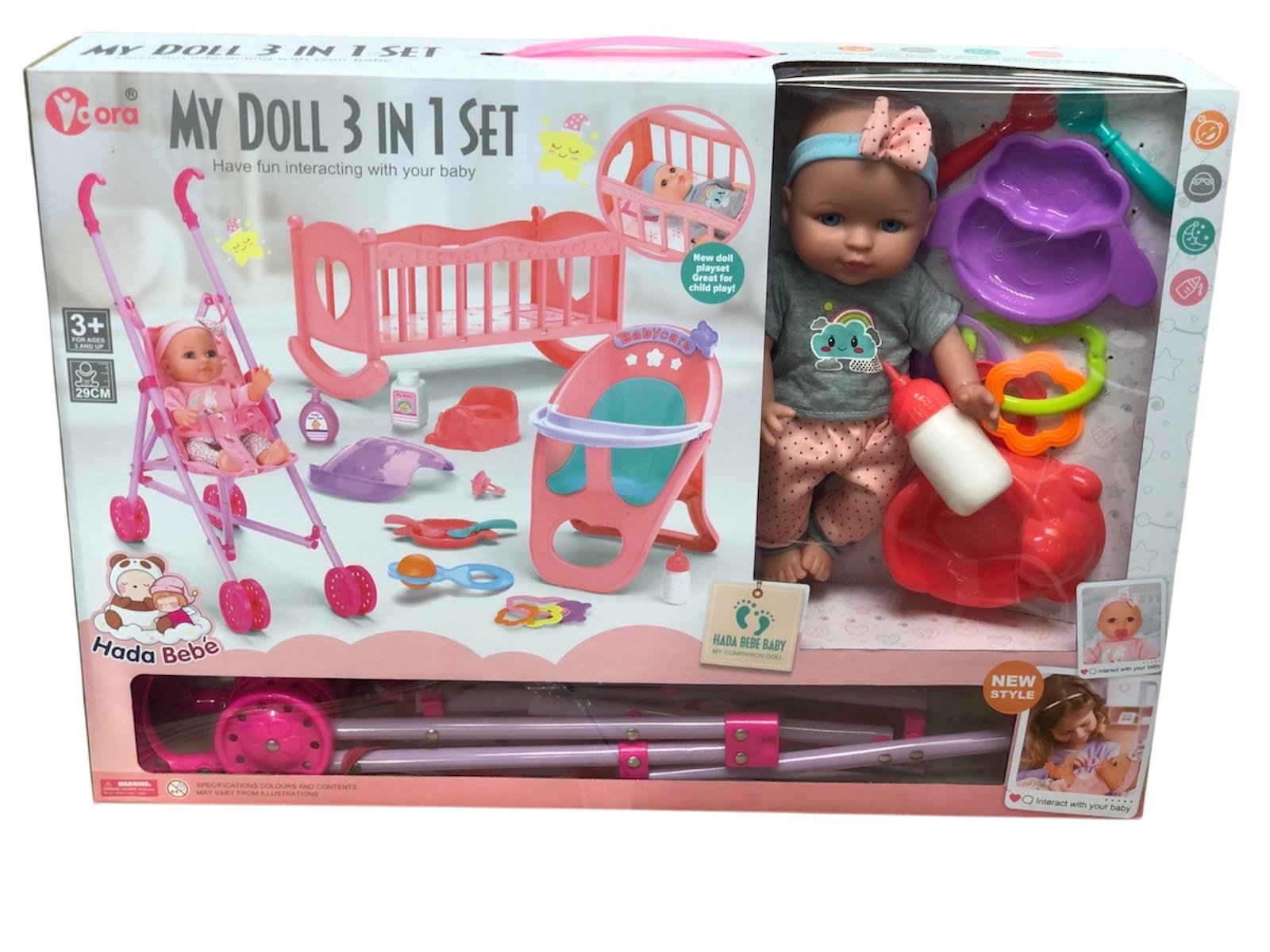 & Free ShippingThe perfect all-in-one doll set for endless fun! The My Doll 3-in-1 Set lets kids dress up their doll, enjoy nurturing care play, and create imaginative stories.
