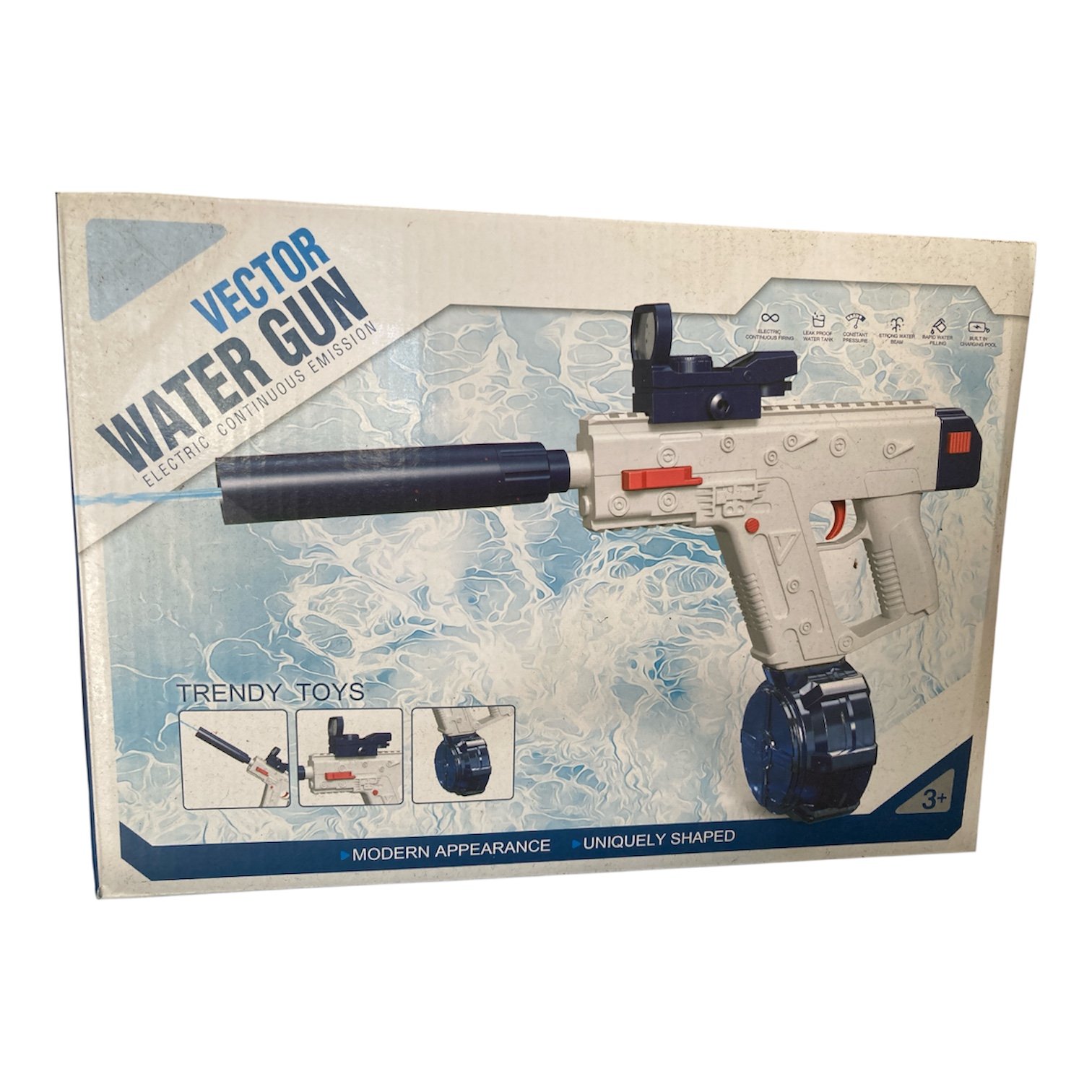 High-power electric water gun featuring continuous emission, constant pressure output, leak-proof tank, rapid refill system, and a sleek modern design built for ultimate summer fun.