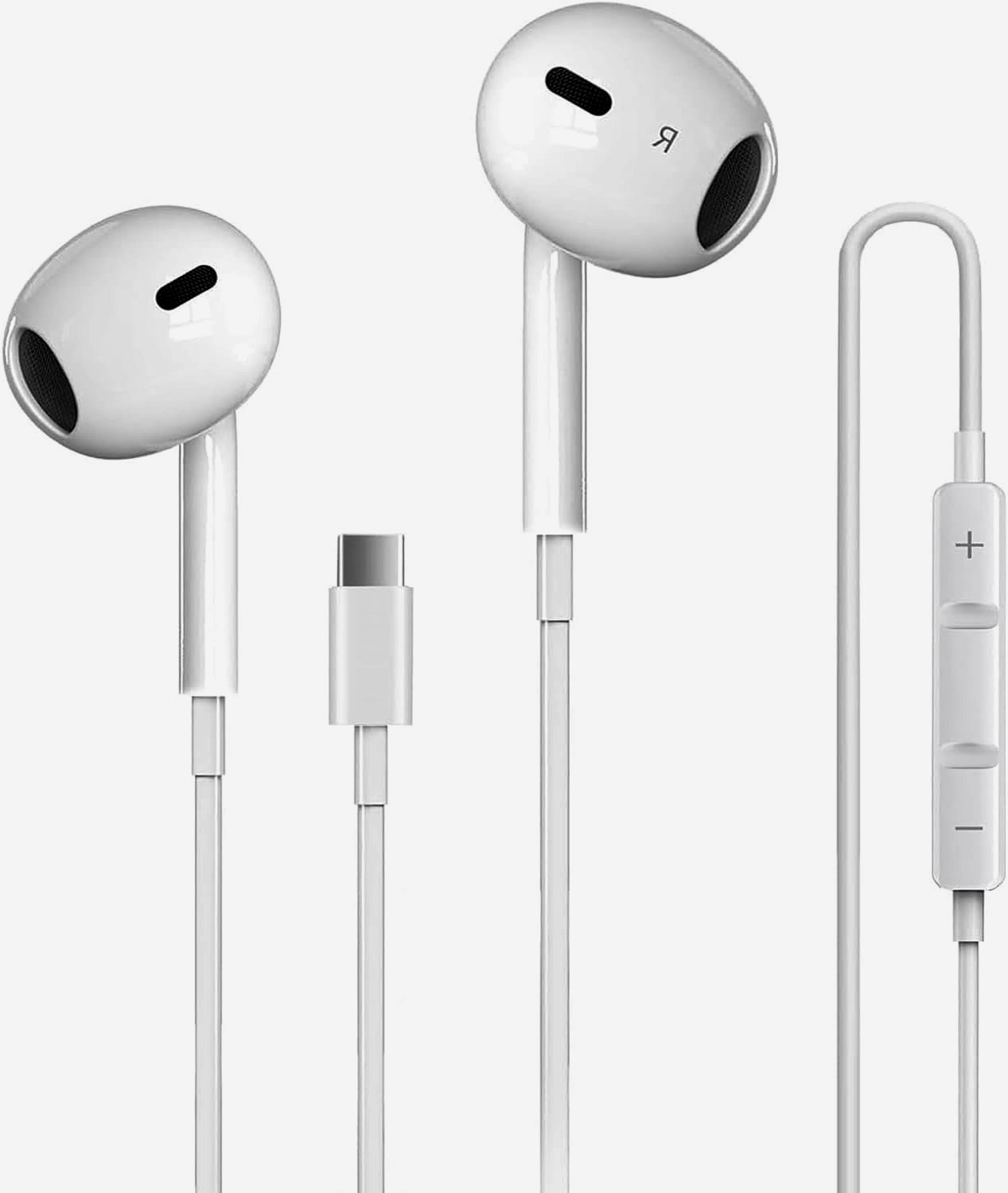 Wired USB-C In-Ear Headphones with Hi-Fi Sound & Noise Cancellation – Built-in Mic & Volume Control (White)£7.49