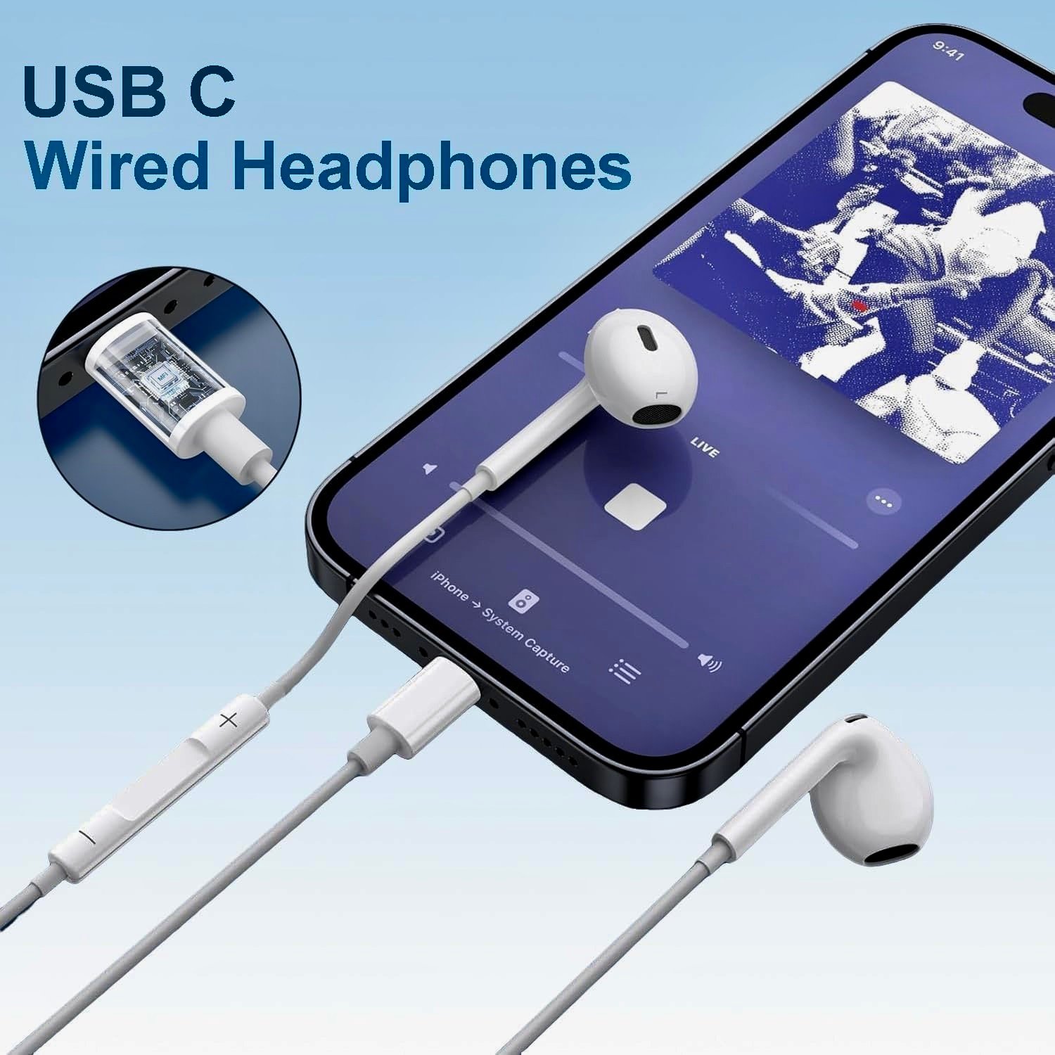 Wired USB-C In-Ear Headphones with Hi-Fi Sound & Noise Cancellation – Built-in Mic & Volume Control (White)Availability: 11 in stock